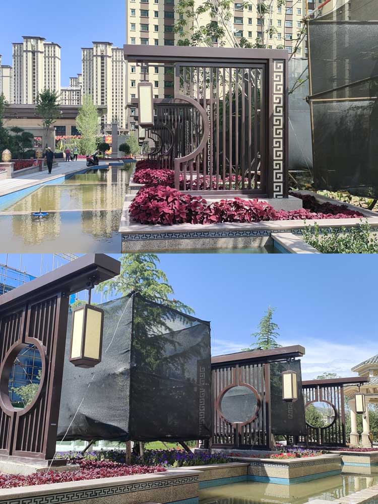甘肅平涼世紀花園特色景觀宮燈項目,按照地產商提供圖紙定制生產,造型結合小區特色,采用造型+照明的裝飾效果,既美化小區又能夠突出照明特點,倆者相輔相成。