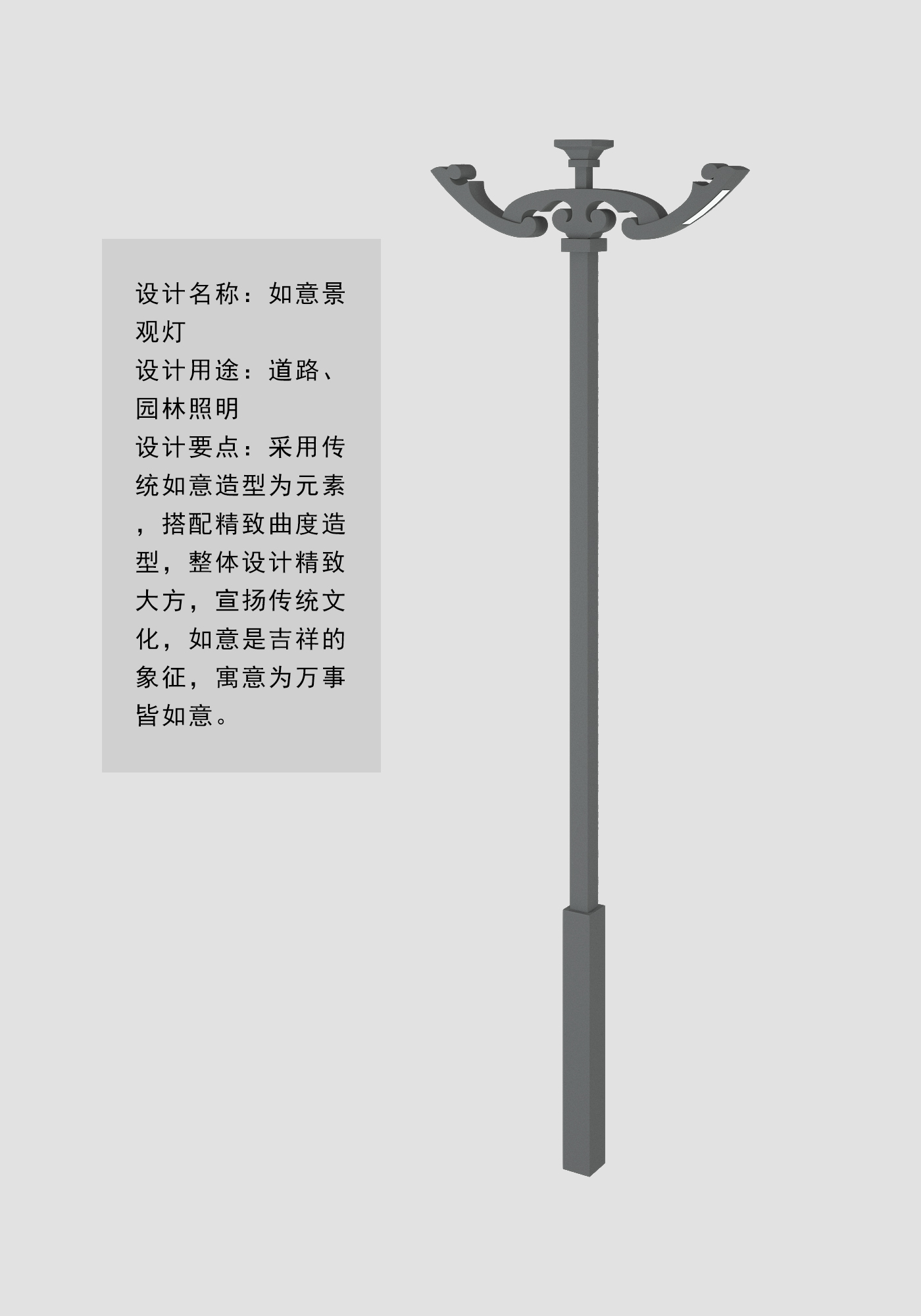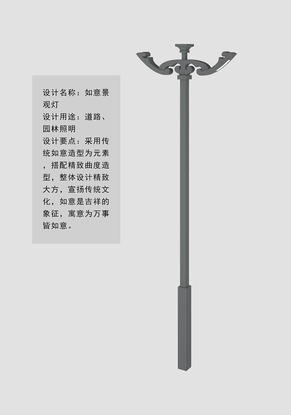 設(shè)計(jì)要點(diǎn):采用傳統(tǒng)如意造型為元素,搭配精致曲度造型,整體設(shè)計(jì)精致大方,宣揚(yáng)傳統(tǒng)文化,如意是吉祥的象征,寓意為萬事皆如意。